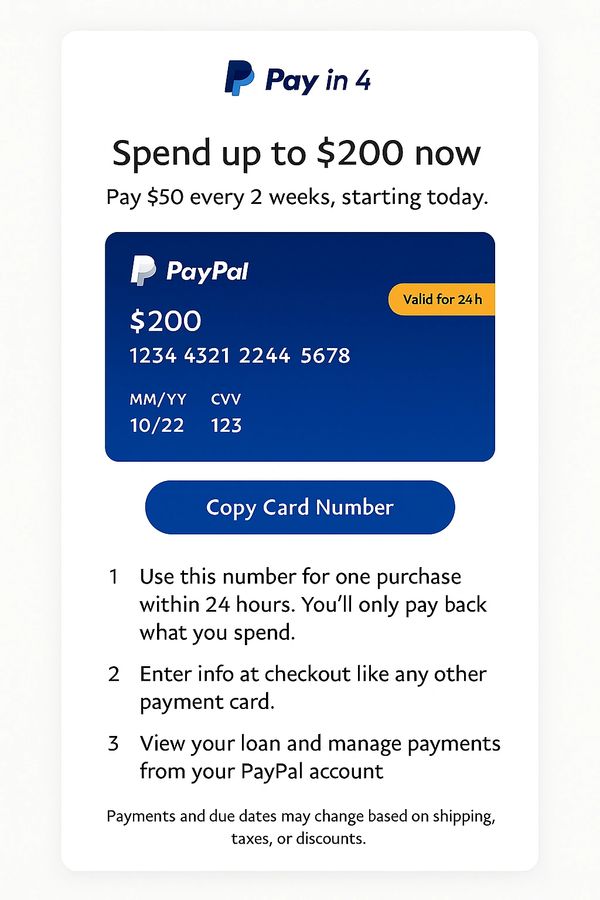 The virtual card launch successfully unlocked Pay in 4 for non-integrated merchants, starting with Amazon. This introduced a new payment option that customers understood and trusted. Content testing helped reduce confusion around terminology and repayment expectations.
